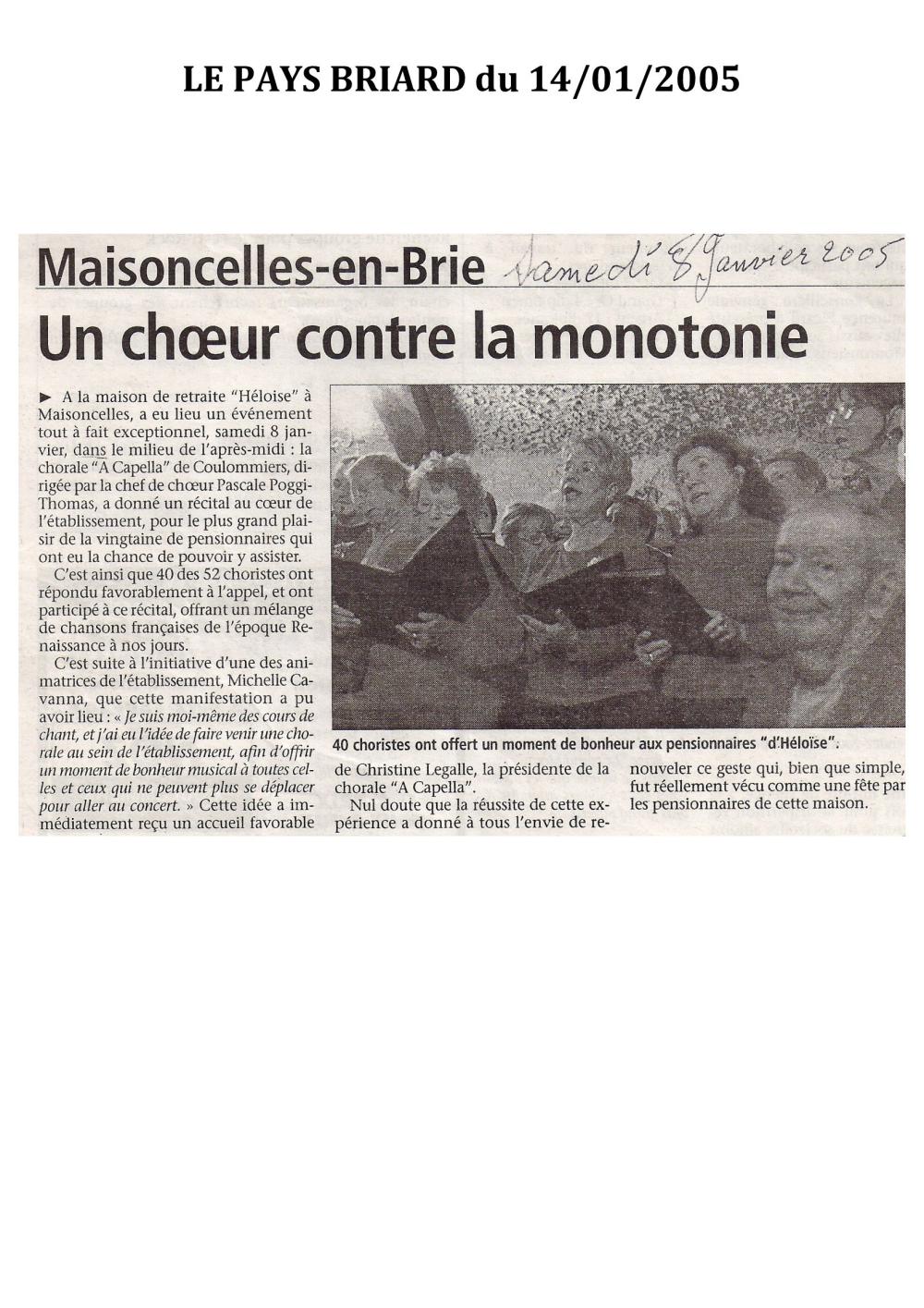 Un choeur contre la monotonie - Le Pays Briard - 14 janvier 2005
