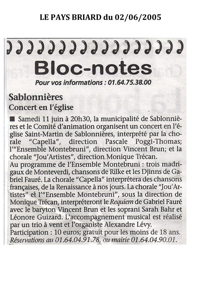 Bloc-notes - Le Pays Briard - 02 juin 2005