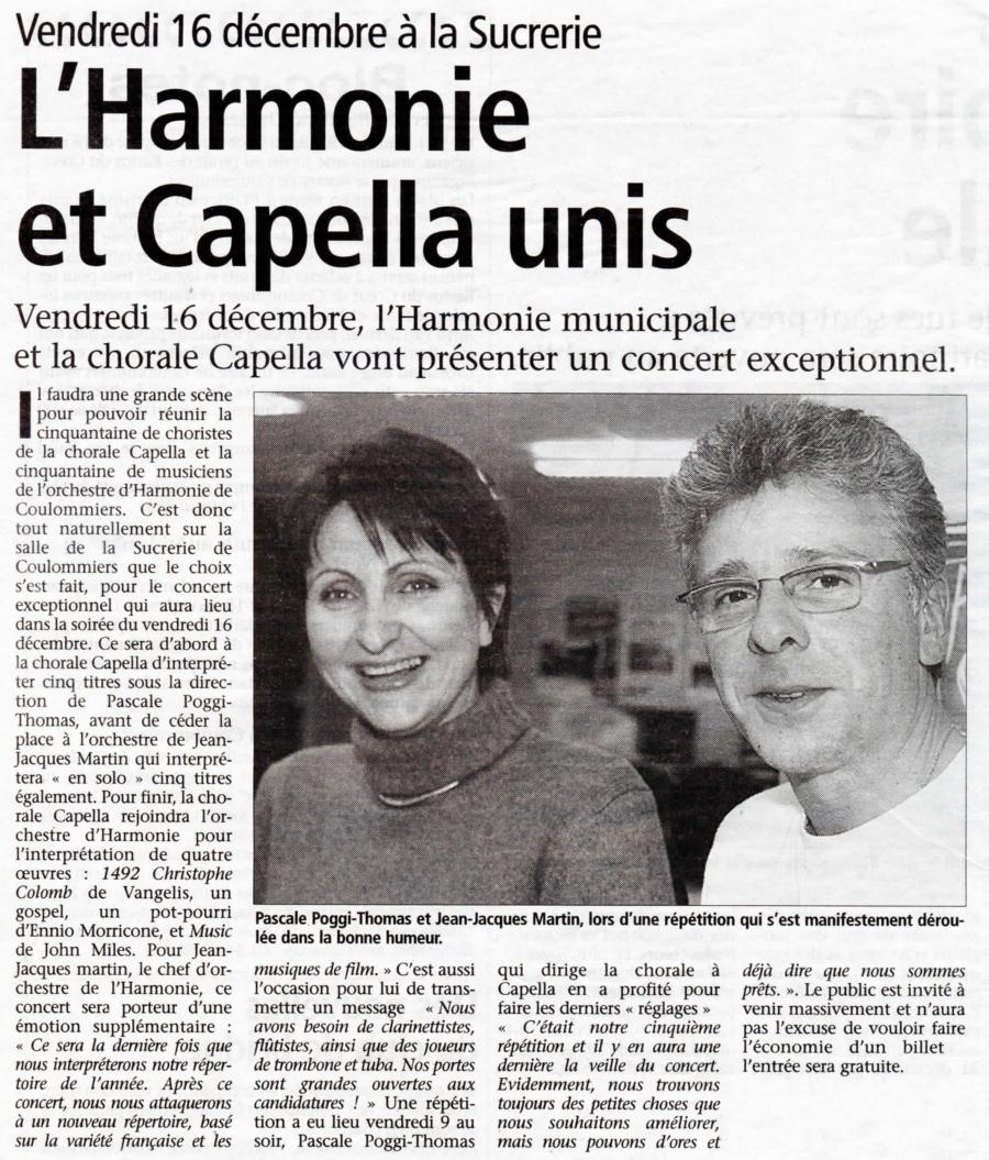 L'Harmonie et Capella unis - Le Pays Briard - 09 décembre 2005