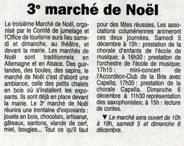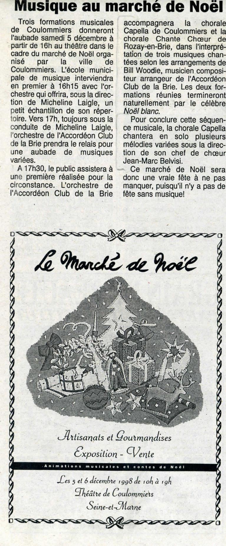 Musique au marché de Noël - Le Pays Briard - 1er décembre 1998