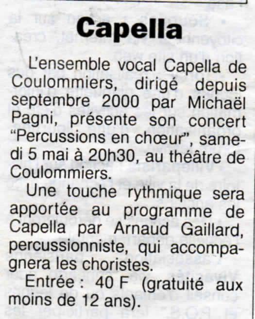 Capella "percussions en choeur" - Le Pays Briard - 02 mai 2001
