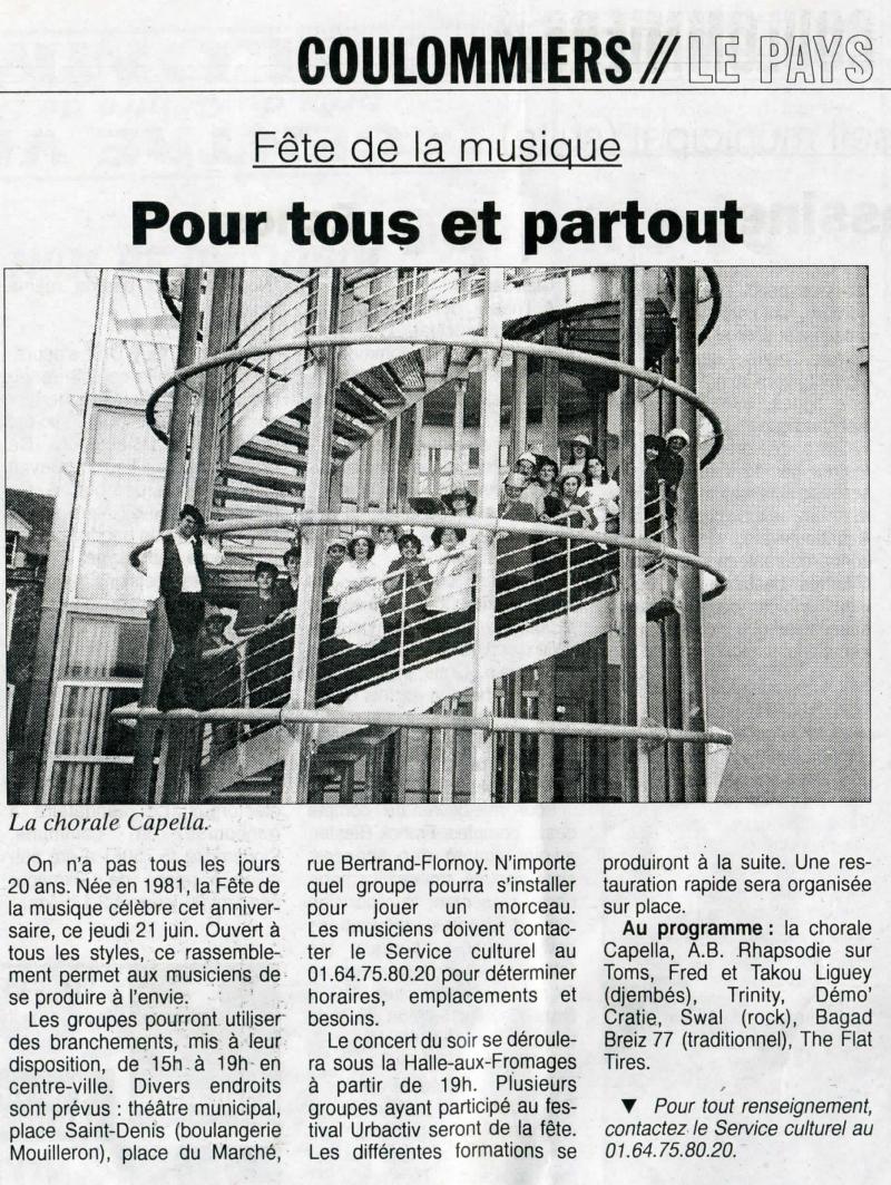 Fête de la musique pour tous et partout - Le Pays Briard - 19 juin 2001