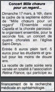 Concert mille choeurs pour un regard - Le Pays Briard - 1er mars 2002
