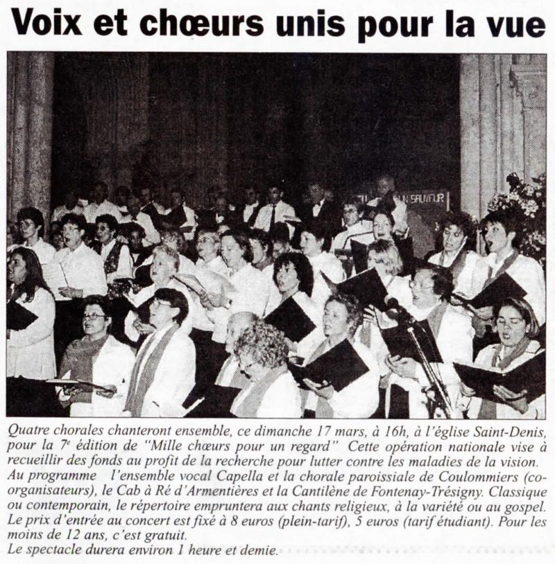 Voix et choeurs unis pour la vue - Le Pays Briard - 15 mars 2002