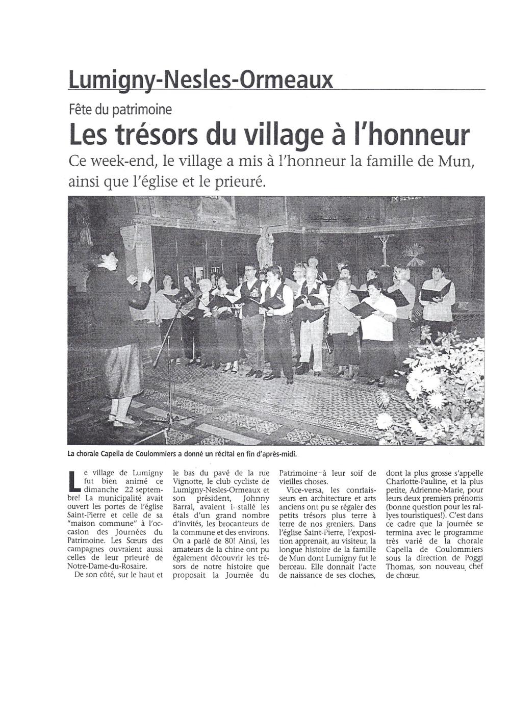 Les trésors du village à l'honneur - Le Pays Briard - 22 septembre 2002