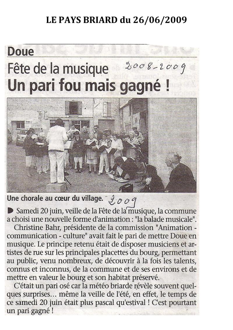 Un pari fou mais gagné - Le Pays Briard - 26 juin 2009