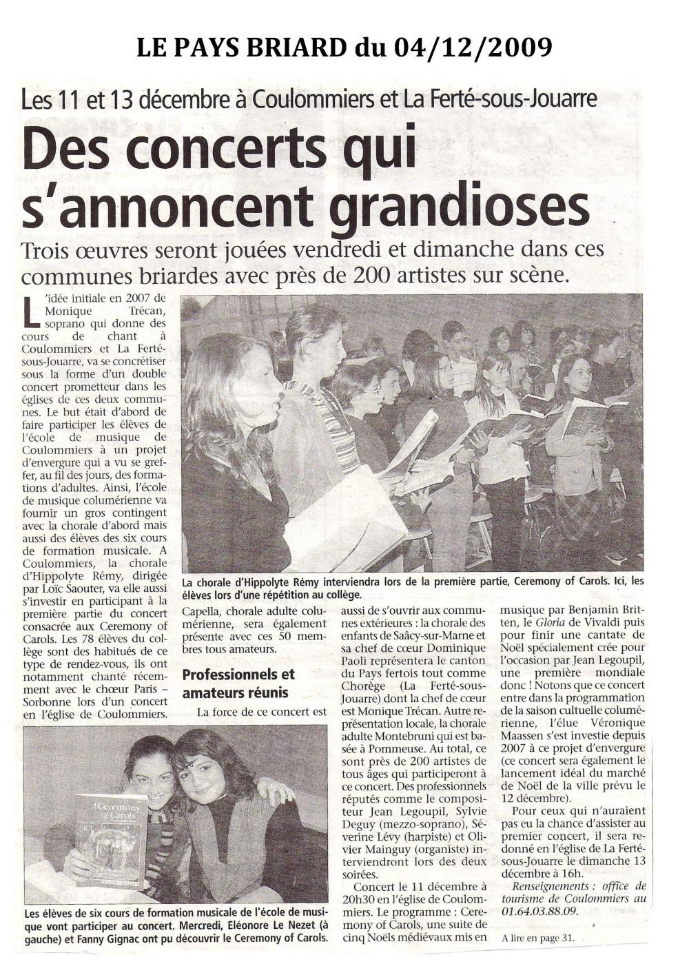 Des concerts qui s'annoncent grandioses - Le Pays Briard - 04 décembre 2009