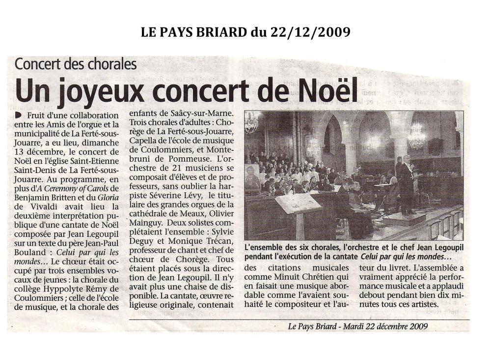 Un joyeux concert de Noël - Le Pays Briard - 22 décembre 2009