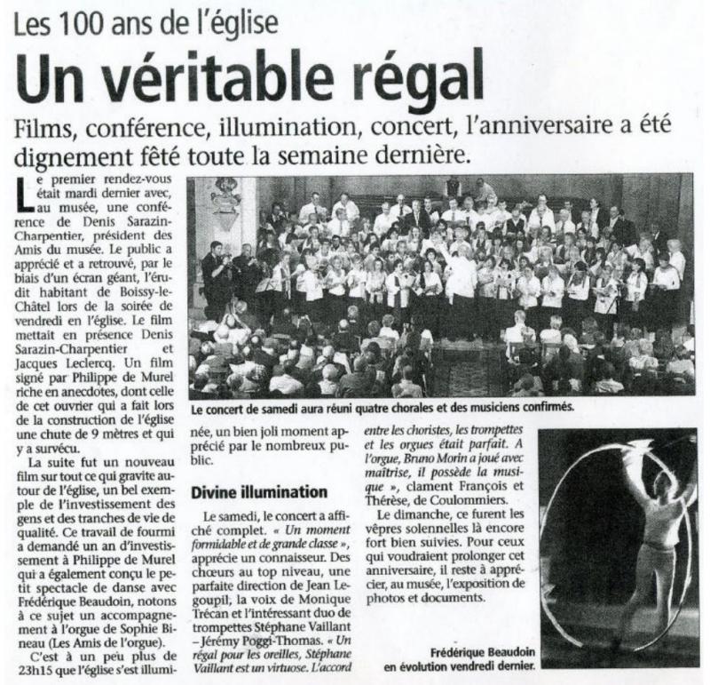 Les 100 ans de l'église, un véritable régal - Le Pays Briard - 21 mai 2011